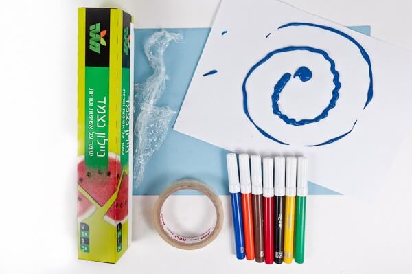 - נכסה את כל היצירה בניילון נצמד מבלי להצמיד את הניילון לדף עדיין.